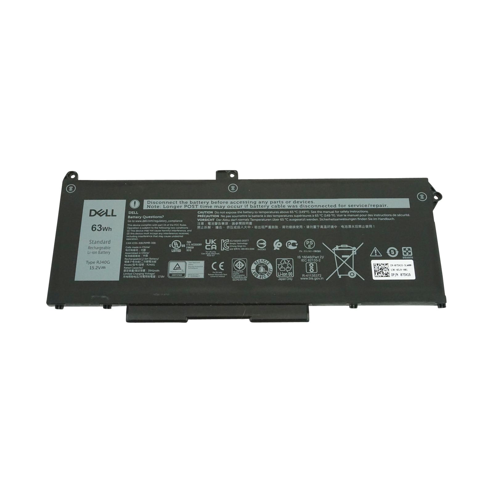 Dell 63Wh Standard Rechargeble Li-ion Battery RJ40G :